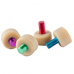 Gumball Toe Stops are designed and made specifically with roller derby in mind. Made with all natural rubber and an aluminum stem (to reduce weight), Gumball Toe Stops have the perfect balance of grip and durability necessary for quick stops and fast starts. Gumball Toe Stops are great for all types of skating surfaces including wood, sport tile, polished and unpolished concrete, masonite, banked tracks and outdoor. They are available in two stem lengths, standard and short.