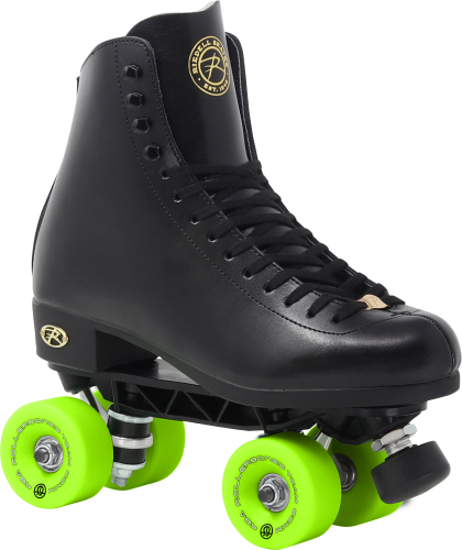 Riedell 120 leather boots, leather lining with extra ankle padding, Sunlite Zytel nylon plates (your choice of colors black, blue, green, pink, purple, teal, white, or yellow), Roller Bones wheels, SpeedMaster ABEC7 bearings, 5/8- adjustable toe stops.